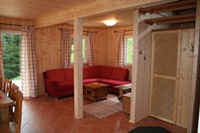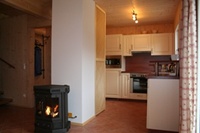 Das Haus betreten Sie über einen Vorraum mit Garderobe. Im Anschluss finden Sie noch einen abgetrennten Abstellraum. Anschließend betreten Sie das Haus über einen kleinen Gang zum großzügigen Wohn-Essbereich (mit Fernseher, DVD-Spieler und kleiner Stereoanlage) sowie die komplett eingerichteter Küche inkl. Geschirrspüler und einen Schwedenofen. Ebenso befindet sich im Erdgeschoss noch ein Bad mit Dusche.