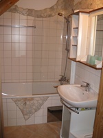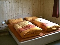 Durch das geschlossene Treppenhaus gelangt man in das Obergeschoss. Hier sind zwei freundlich eingerichtete Schlafzimmer, sowie das Bad untergebracht. Bei den Schlafzimmern handelt es sich um ein Doppelzimmer und eine Zimmer mit einen Stockbett und einem Einzelbett. In diesem Schlafzimmer kann noch ein Zustellbett aufgestellt werden.