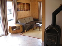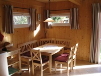 Im Erdgeschoss befindet sich ein Vorraum mit Garderobe, ein WC und ein großzügiger Wohnraum mit integriertem Essbereich und komplett eingerichtete Küche. Die Küche verfügt über einen Geschirrspüler, Backofen, Kühlschrank mit Gefrierfach und Microwelle. Im Wohnbereich lädt ein gemütliches Sofa zum Verweilen am Feuer des Schwedenofens ein. Selbstverständlich ist auch ein Fernseher und eine kleine Stereoanlage vorhanden.