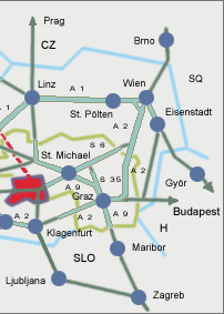 Tipp zur Hauptreisezeit: Wenn Sie aus Richtung Salzburg kommen, vermeiden Sie den Tauerntunnel und fahren bereits am Autobahnkreuz Radstadt Richtung Graz ab. In Radstadt folgen Sie dem Wegweiser Richtung Villach über Obertauern (Passhöhe ca. 1700m). Bei Mauterndorf fahren Sie weiter Richtung Tamsweg/Murau bis Sie dirket nach St. Georgen/Kreischberg kommen. Dann immer dem Schild Ferienpark folgen.